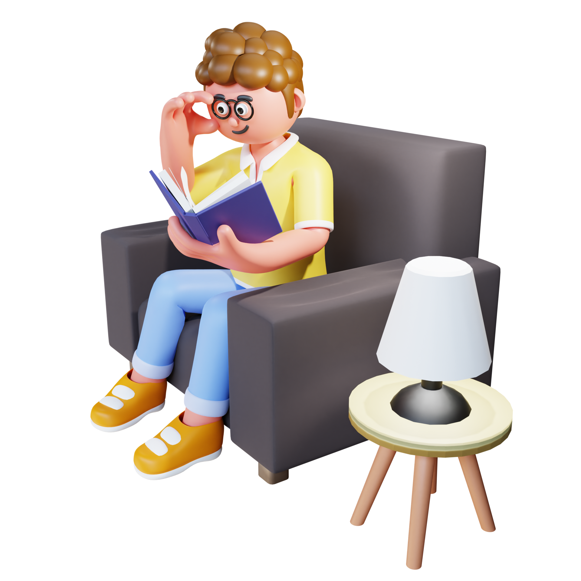 Free 3d Render Man Reading Book And Sit On Sofa 9886392 Png With Transparent Background